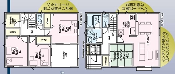| 間取内容 | LDK16.2畳 1階 和室4.5畳 1階 洋室7.5畳 2階 洋室6畳 2階 洋室5畳 2階 S2畳 2階 4LDK+テレワークルーム |